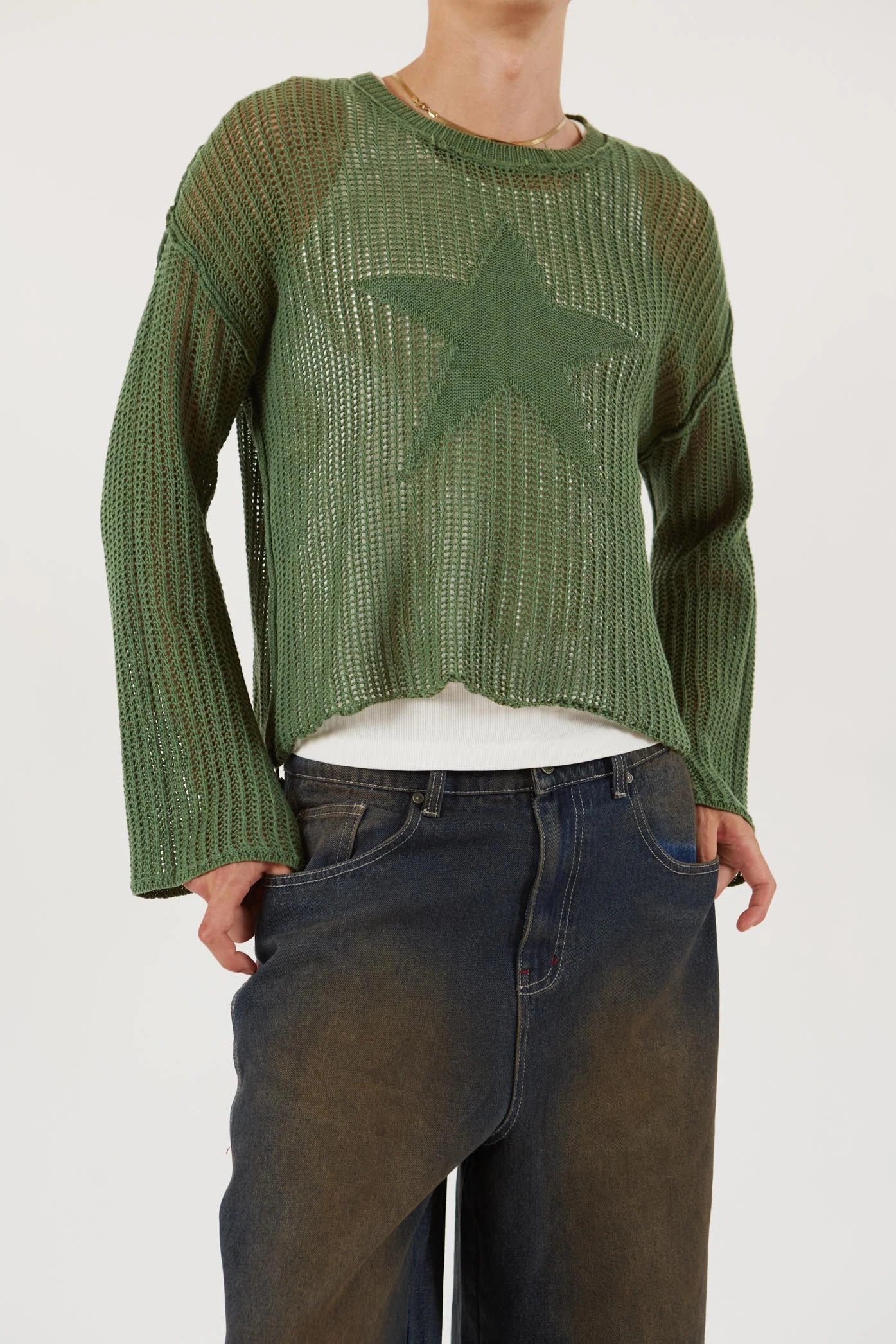 Khaki Star Loose Knit Jumper