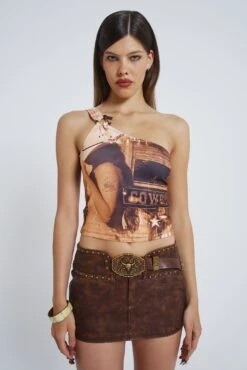 In collaboration with independent brand Cowboys of Habit, we bring you a 13 piece modular collection, designed with multi-wear and western influence at the forefront. With promiscuous charm, inspired by satire and millennial humour, the range includes playful slogans and loud graphics amongst 3 in 1 denim jumpsuits and reversible dresses.